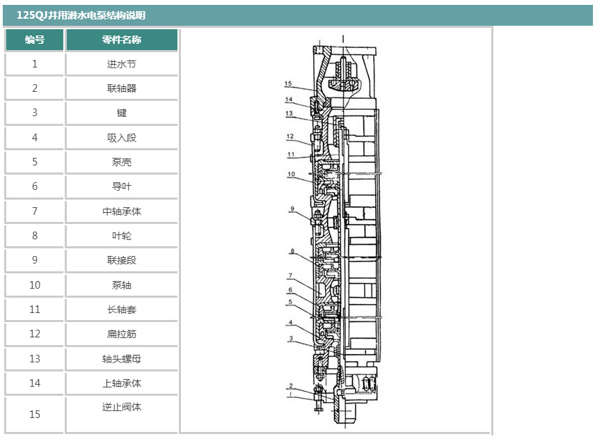 125QJ井用(yong)潛水(shui)電泵(beng)性能(neng)參數(shu)