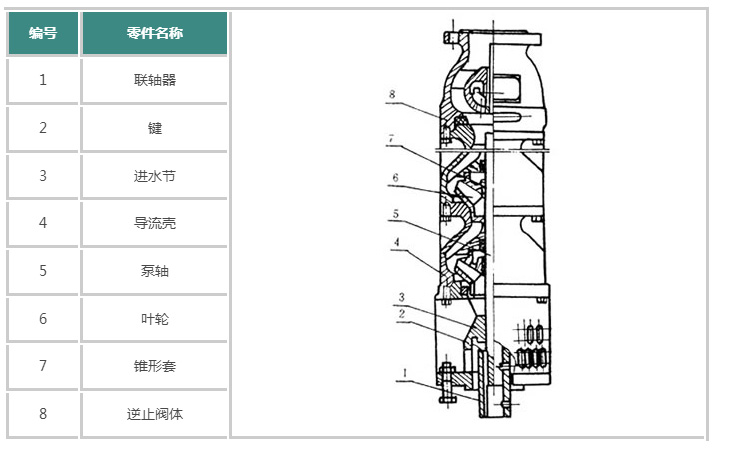 1、125QJ井用(yong)潛水(shui)電泵(beng)為離(li)心式(shi)或混(hun)流式(shi);采用(yong)水潤(run)滑軸(zhou)承;與(yu)電機(ji)🧜🏼‍♂️的聯(lian)接采(cai)用聯(lian)軸器(qi)剛性(xing)聯接(jie)。泵葉(ye)輪在(zai)😵‍💫電機(ji)帶動(dong)下旋(xuan)轉産(chan)生離(li)心力(li),使液(ye)體能(neng)量增(zeng)加經(jing)泵殼(ke)的👀導(dao)流作(zuo)用進(jin)行提(ti)水。在(zai)水泵(beng)上端(duan)設有(you)逆止(zhi)閥體(ti),防止(zhi)電泵(beng)停機(ji)👻時,因(yin)揚水(shui)管中(zhong)倒流(liu)⛹🏻‍♀️的水(shui)損壞(huai)工作(zuo)部件(jian)。閥😺上(shang)有洩(xie)水孔(kong),可将(jiang)管路(lu)中的(de)水緩(huan)緩放(fang)掉,防(fang)止冬(dong)天😗凍(dong)😁裂管(guan)路。  (注(zhu):低揚(yang)程潛(qian)水泵(beng)不設(she)🧑🏽‍🎄逆止(zhi)閥體(ti))