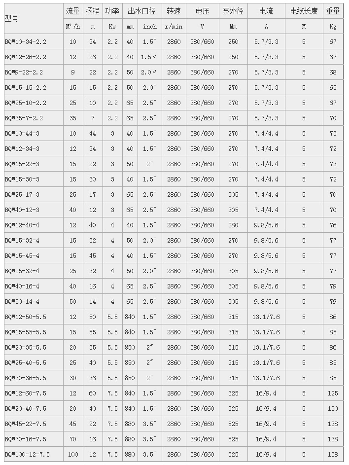 電機使用(yong): 電機為全(quan)封閉、礦用(yong)隔爆型幹(gan)式三相潛(qian)污水電泵(beng)用電動機(ji)