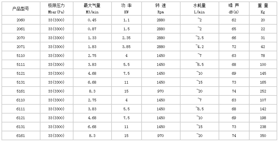 2BV型水環(huan)式真空(kong)泵的主(zhu)要技術(shu)數據: