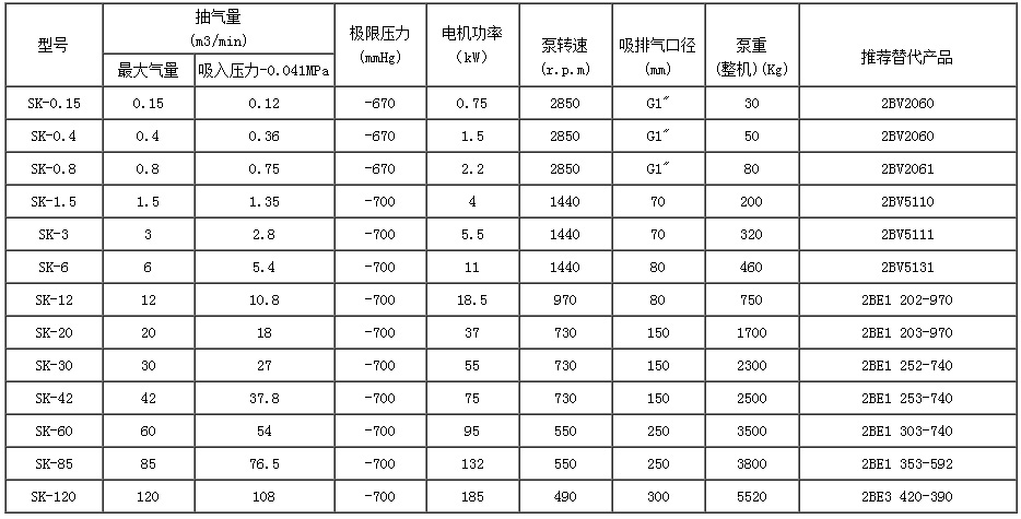 SK系列水環(huan)式真空泵(beng)的用途及(ji)使用範圍(wei):